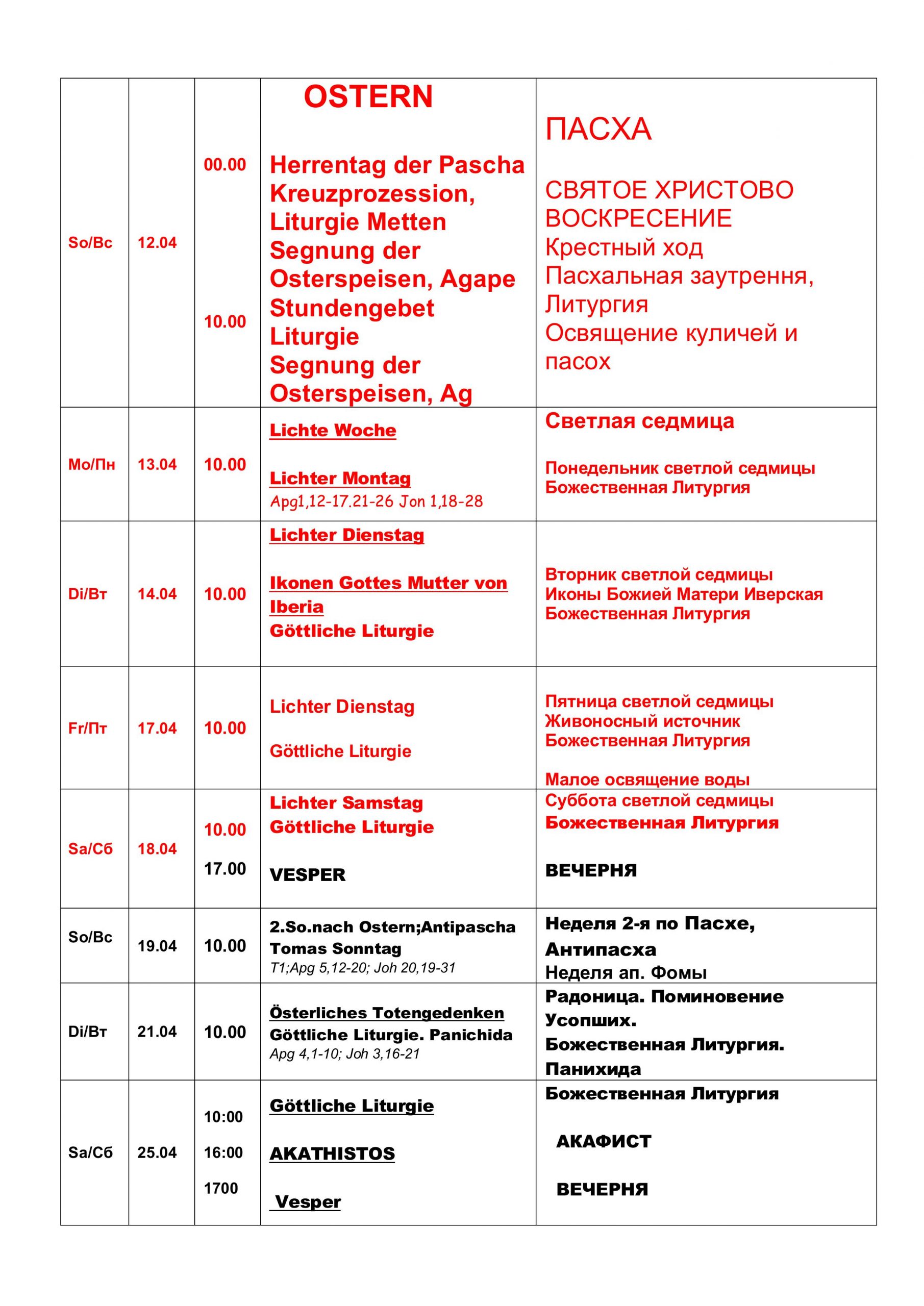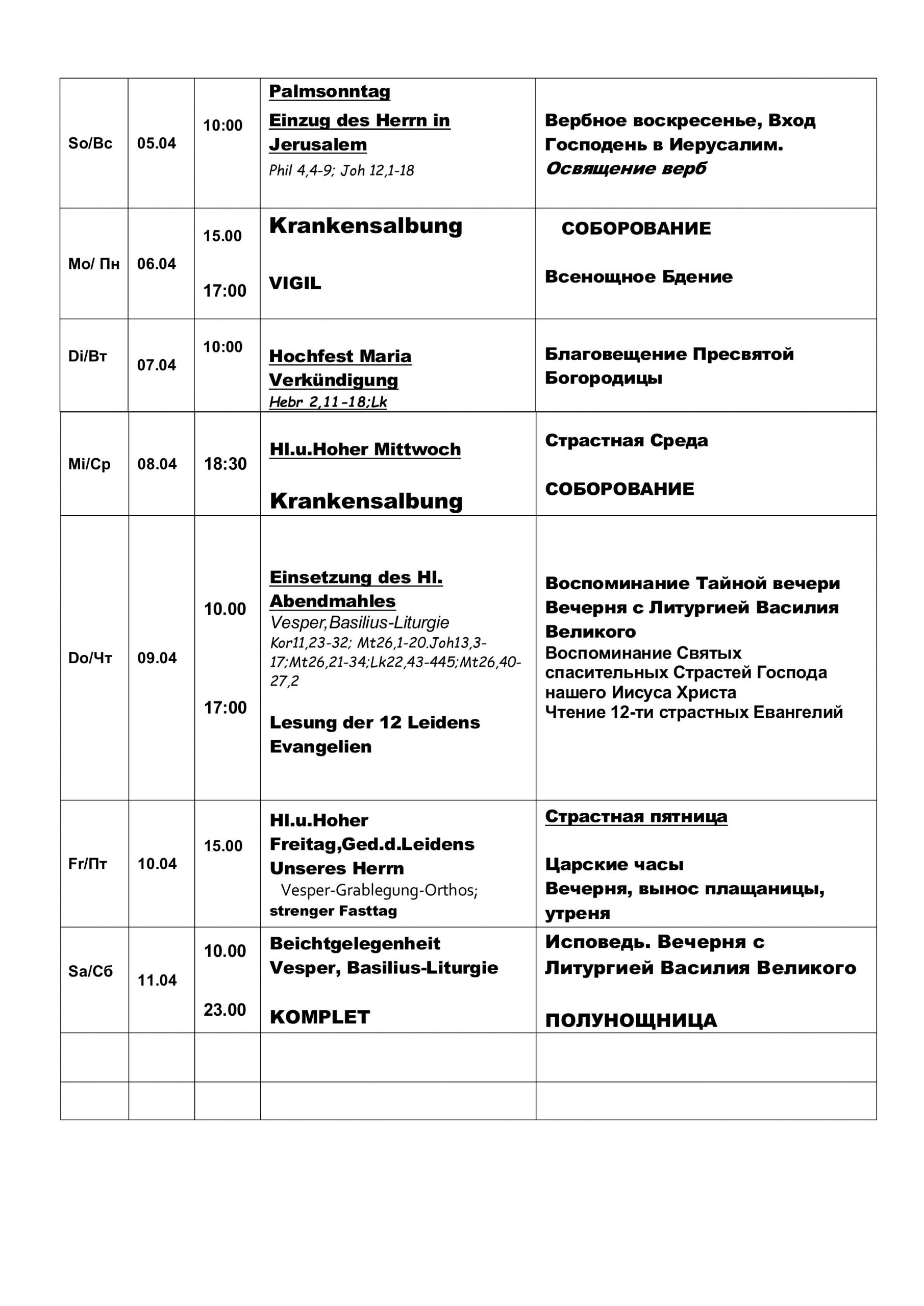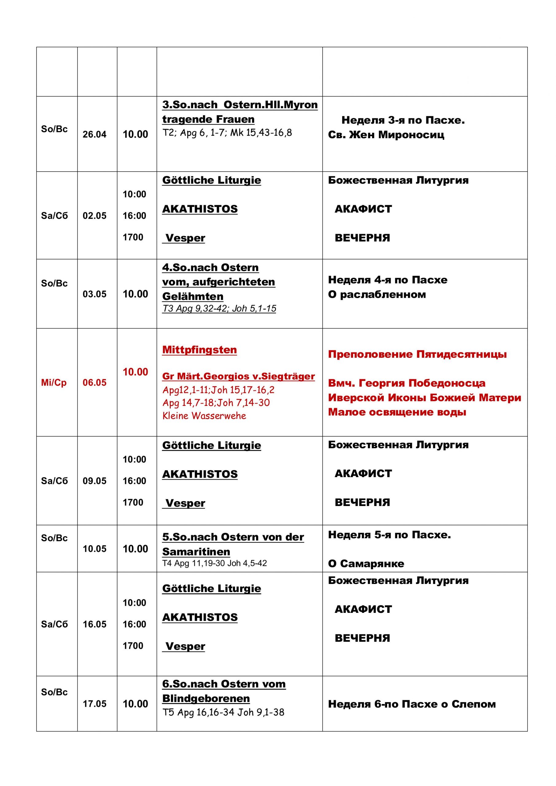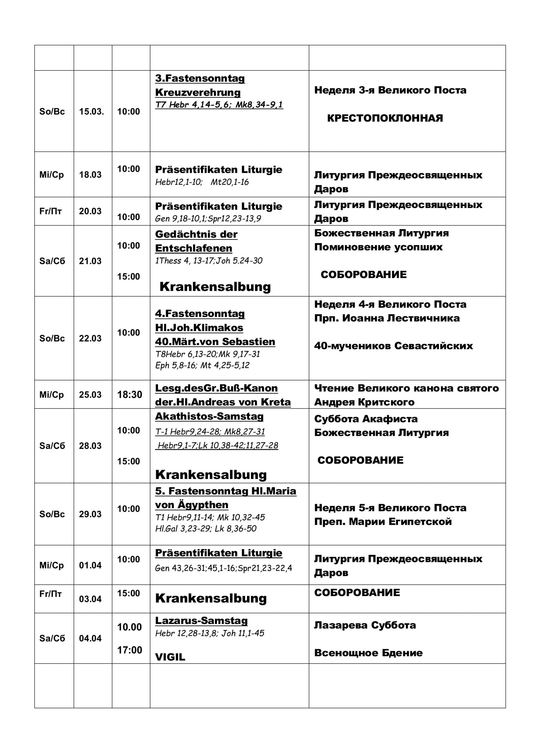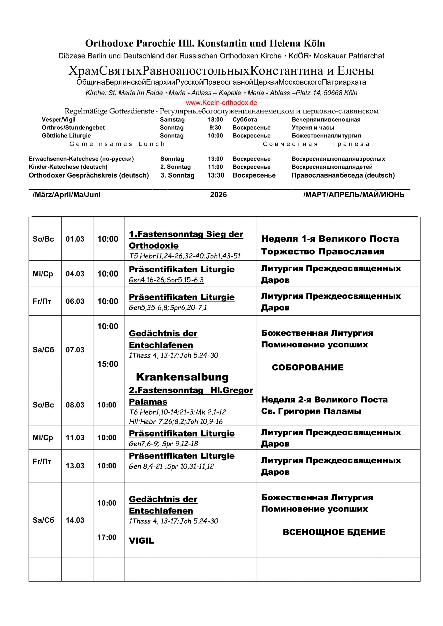 Расписание märz,april,mai, juni 2026